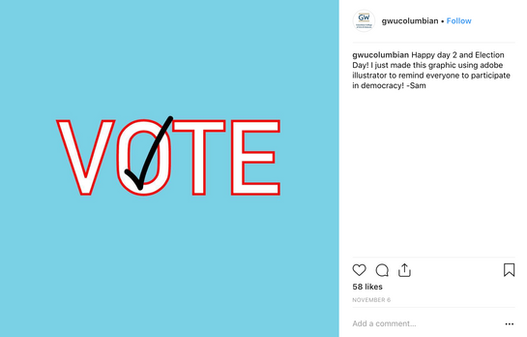 During this period, she contributed to 5 social media posts to engage @gwucolumbian's followers. She also regularly updated their Instagram story during this week.